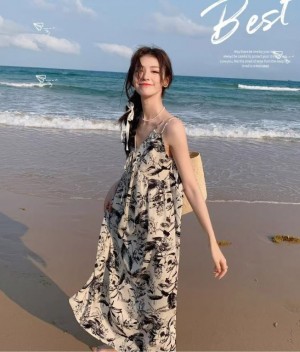 무료 [CD558]썸머 뒤트임 나시 롱 원피스 여름 해변 롱 허리 뒷밴딩 디테일 속치마 바캉스룩 휴가룩 여행룩