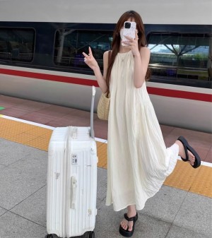 DOO 57026378 하늘하늘 가볍고 청순미 여성 여름 바캉스 꼬임 홀터넥 민소매 롱 원피스 휴가철 일상룩