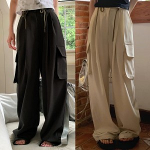 [DOO/ 51581388 여자 카고 조거팬츠 스트링 와이드 밴딩 건빵바지 빅카고 포켓 핀턱 슈트 조거 스타일