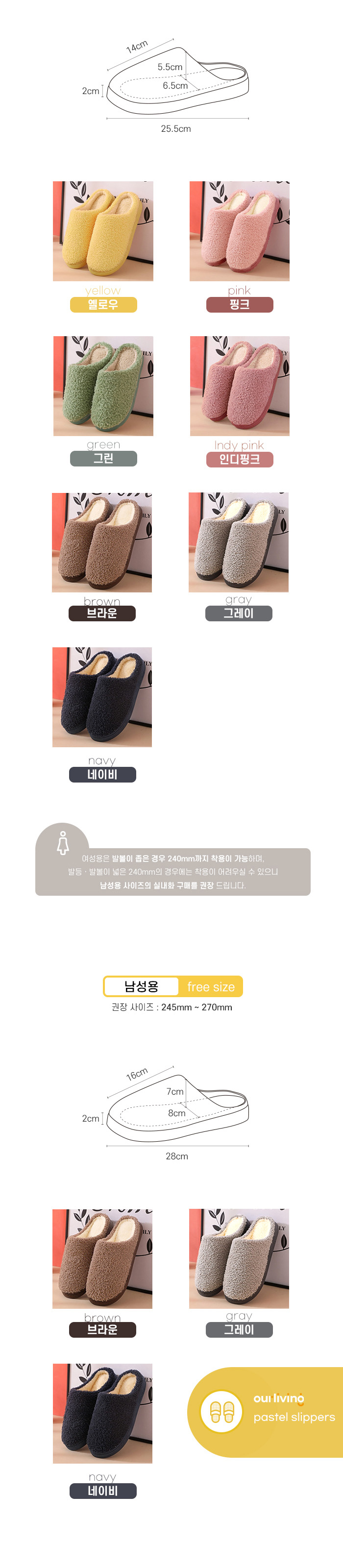 [DOO] 9411140 최저가격 예쁜 파스텔 슬리퍼 겨울 방한 털실내화 사무실 거실화 슬리퍼 층간소음