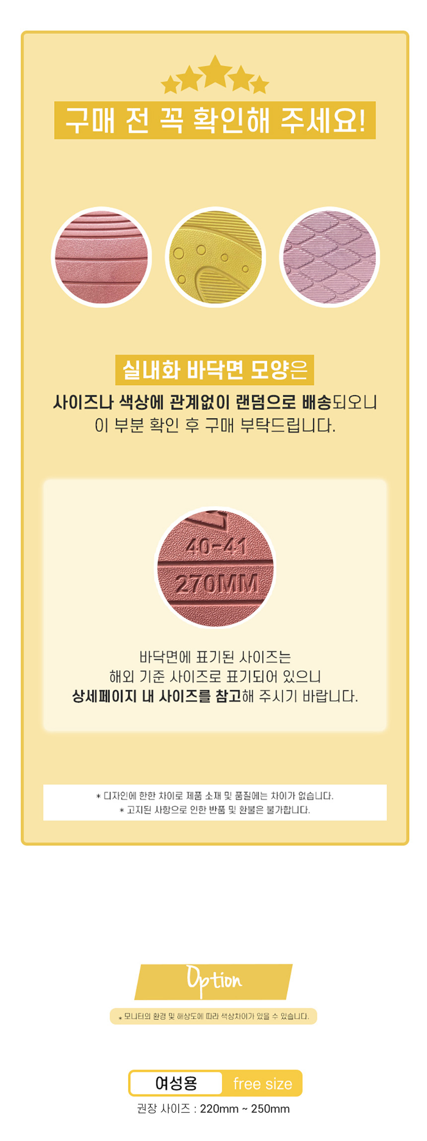패턴 및 프린트 무늬가 들어간 경우 제작하는 과정에서 패턴의 위치가 약간씩 다를 수 있습니다. 이는 불량이 아닙니다.