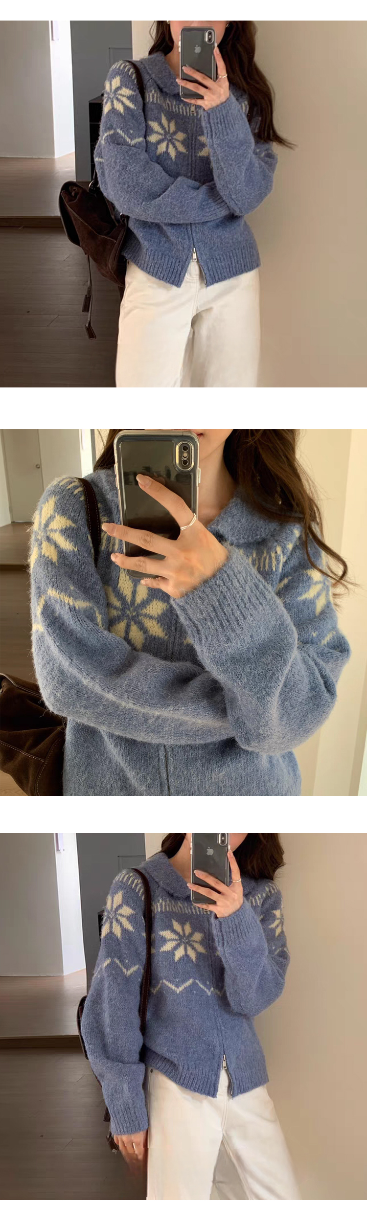 ONN/무료/ [CD521]눈꽃 노르딕 집업 가디건 체형커버 ,세련된,감각적인 ,러블리, 도톰, 쫀쫀한 ,유연한소재, 소프트한 ,늘씬함