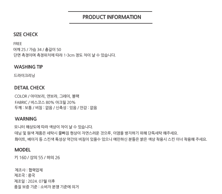 동일 제품이라도 컬러마다 염색 과정에서 약간의 사이즈 차이가 날 수 있습니다.