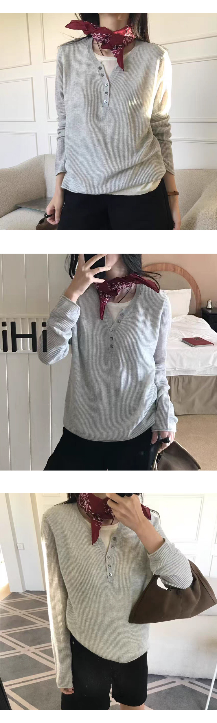 무료[ONN/[NT637]시스루 골지 레이어드 니트 버튼 라운드넥 레이어드룩 루즈핏 골지 루즈핏 꾸아꾸룩