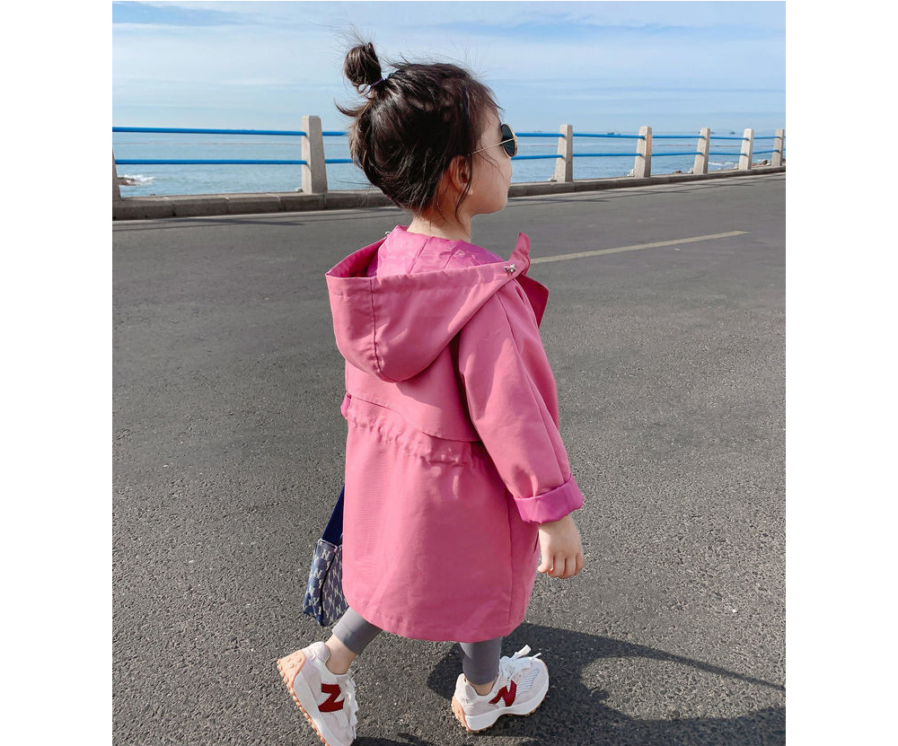 [DOO/ 17380861 핑쿠 소녀 후드 사파리 핑크 점퍼 트렌치코트 여아 후드 바람막이 핑크 공주 고급원단