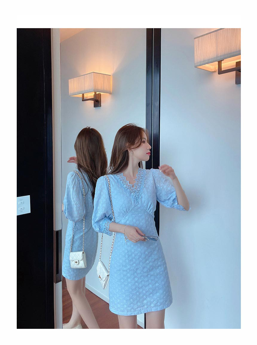 [제이스/ 브이넥 펀칭 원피스(2Color) 여름 스커트 사랑스러운 넥라인 소매밑단 레이스 브이라인 꽃무늬
