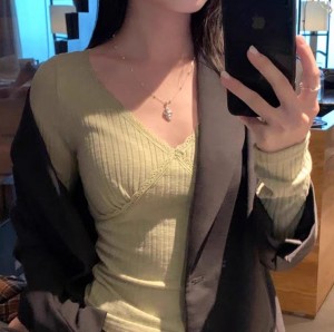 ONN/ [T299]레이스 골지 티셔츠 러블리룩 파인 브이넥 골지 셔츠 이너웨어 페미닌룩 일상룩 나들이룩