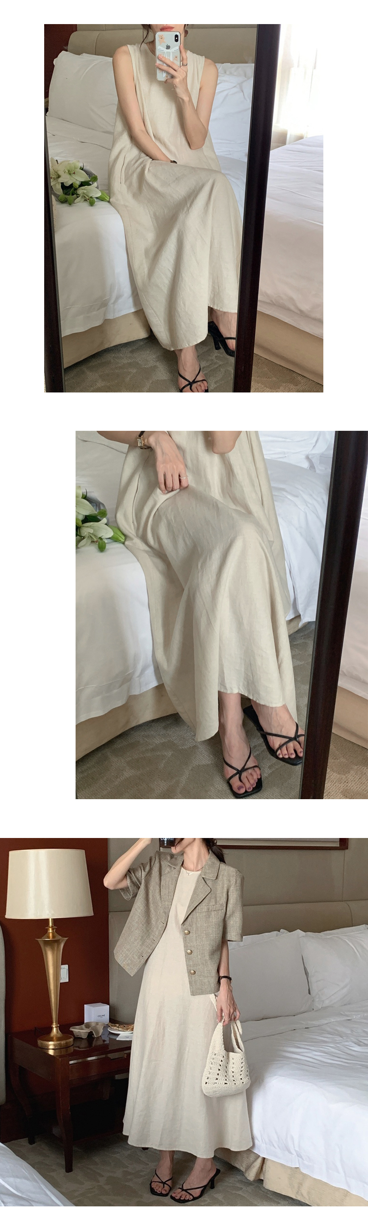 [ONN][OPS1220] 라운드넥 여름 루즈핏  민소매 루즈핏 포켓 롱 원피스 베이지 블랙 빅사이즈 나들이룩 모임룩 휴양지