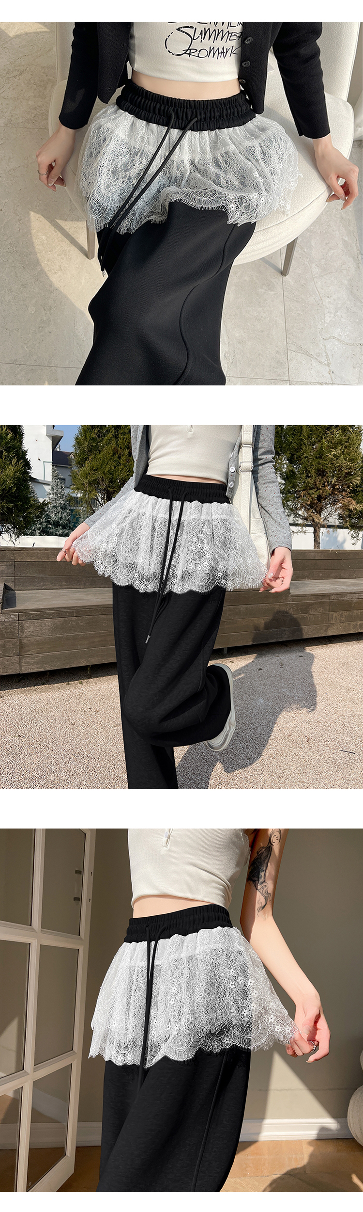 [ONN/ [PT267]레이스 캉캉 레이어드 밴딩 팬츠 2단 레이어드 엉덩이 커버 러블리룩 조거 팬츠 트레이닝