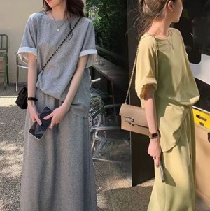 DOO/46893148 여름 라운드넥 시원한 코지 데일리 캐쥬얼 스커트 상하의 세트 세트 코디 나그랑 바캉스 체형커버