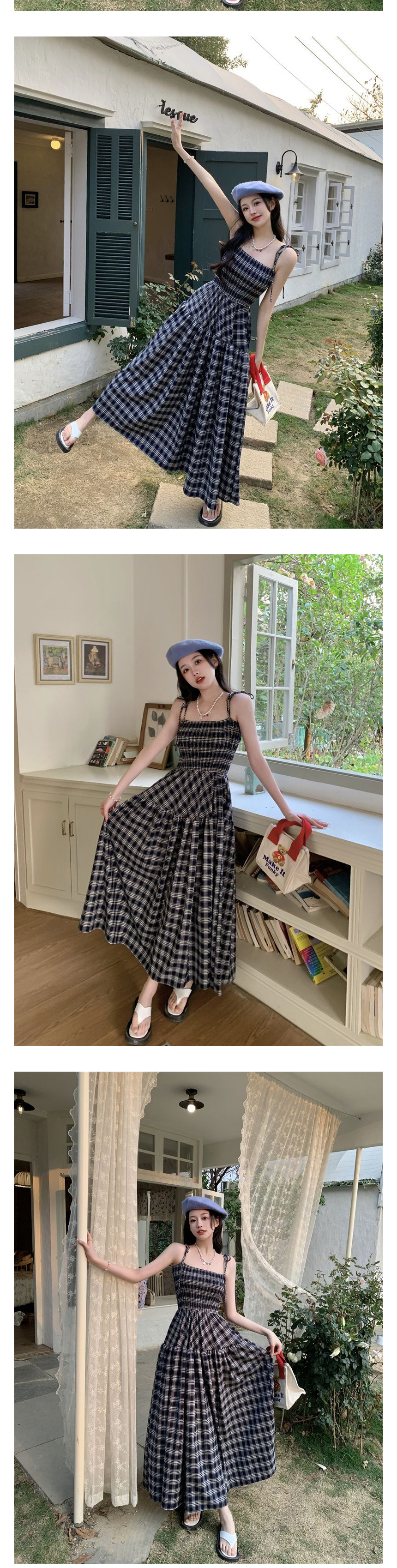 DOO57084347 스트랩 나시 원피스 롱 튜브탑 여성 여름 체크 민소매 바캉스 A라인 휴가철 일상룩