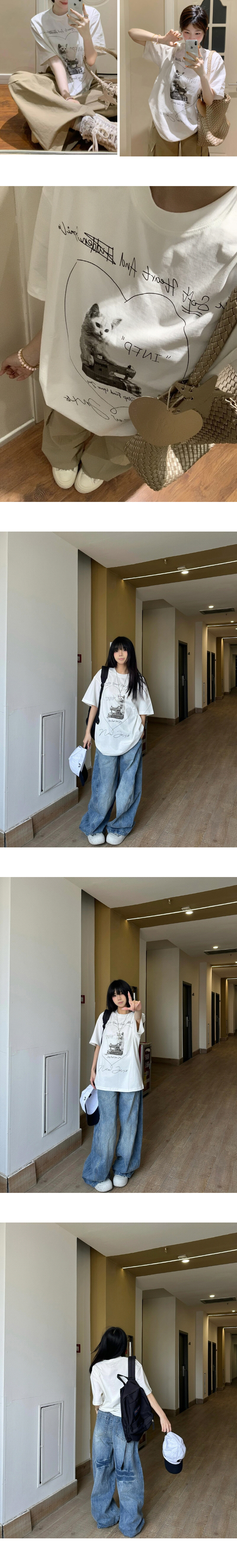 [EF060]인프피 고양이 루즈핏 반팔티셔츠